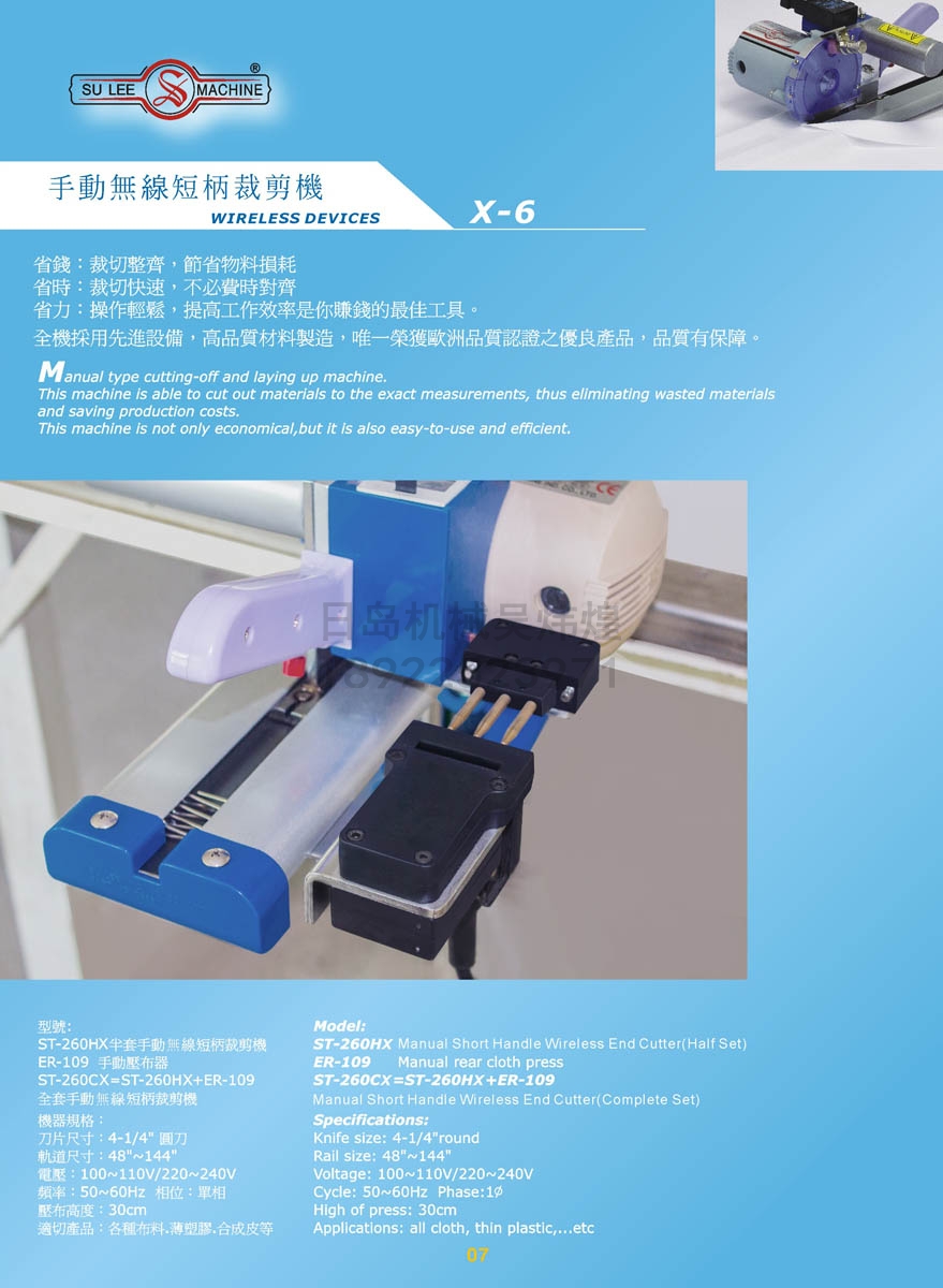 ST-260HX 手動(dòng)短柄直線(xiàn)半套裁剪機 ER-109 手動(dòng)後段壓布機 ST-260CX=ST-260HX+ER-109